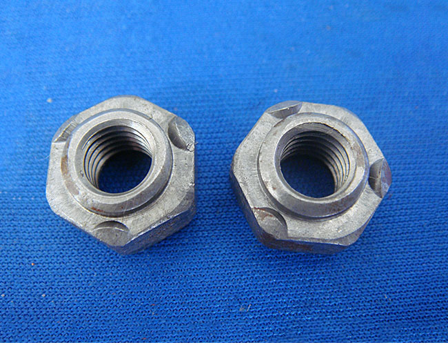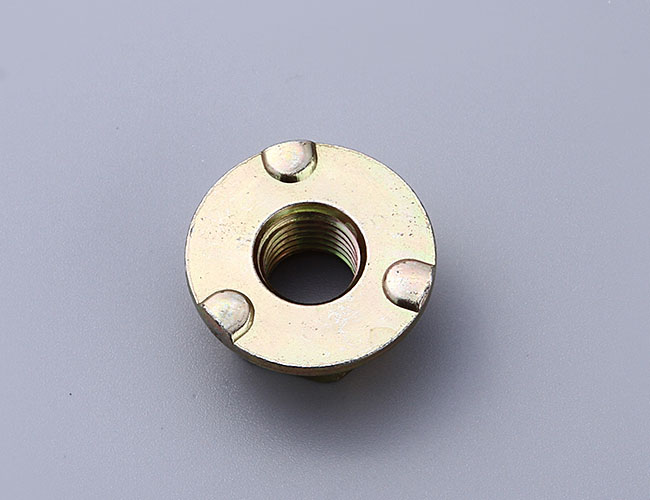 T型焊接螺母,強度比較大,且使用范圍廣,薄厚都可以,但是由于高溫會導致被連接件變形,且不可拆卸,而且一些活潑金屬不能用通常方法焊接,比如鋁,鎂等,需要保護氣或氬弧焊,要求加工工藝和精度。