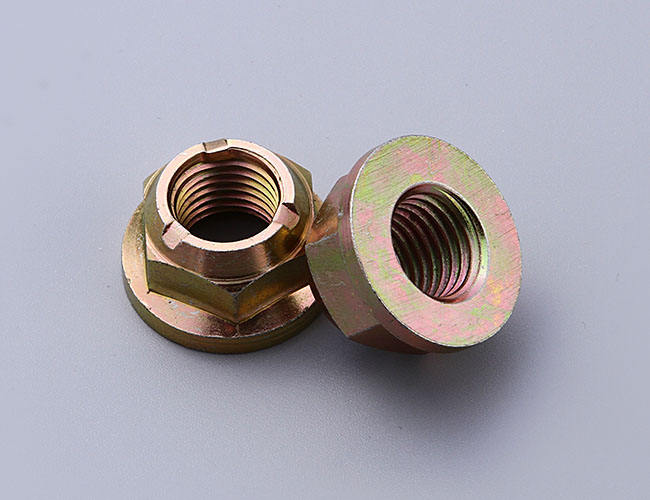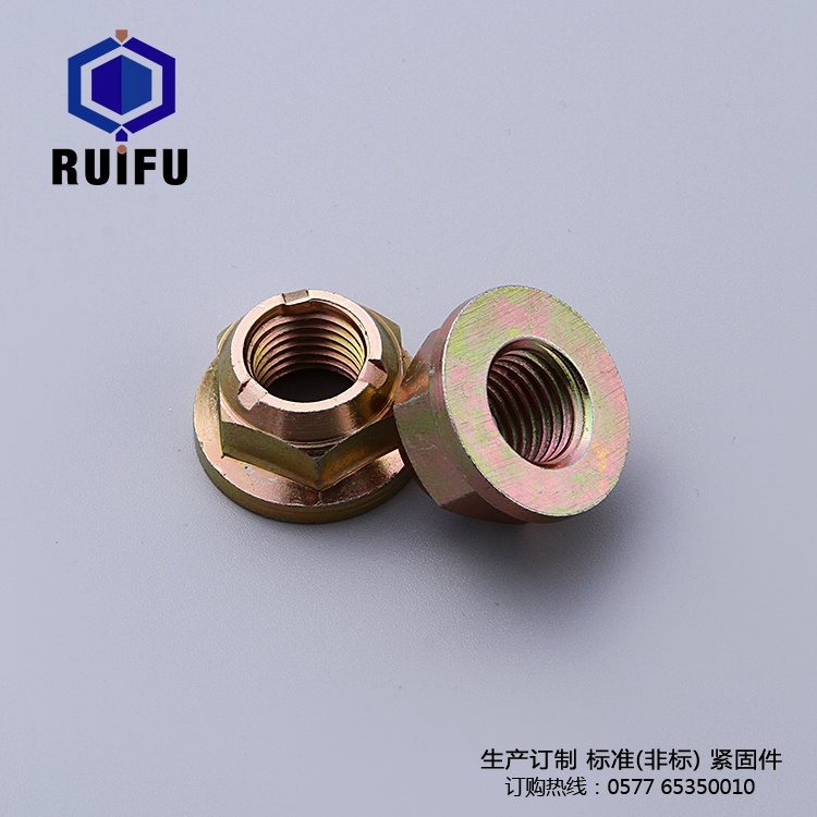 當有振動發生時防松螺母凸起部分相互錯動,產生抬升張力,從而達到不錯的防松效果。法蘭面壓三點緊鎖螺母有鐵的,也有不銹鋼的。但鐵的比較常用。而且還可以根據客戶所需要的色彩進行電鍍處理。一般電鍍處理有環保和非環保的。電鍍有環保彩鋅,環保鎳,環保蘭鋅,環保黑鋅等,也有普通的電鍍,白鋅,彩鋅,黑鋅,白鎳等。