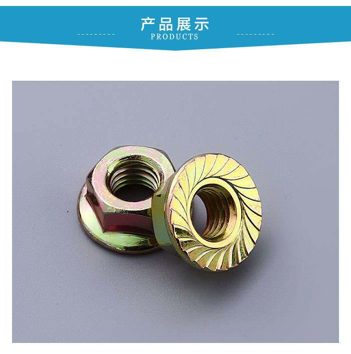 法蘭螺母也稱帶墊螺母,花齒螺母,六角法蘭面尼龍墊圈鎖緊螺母,法蘭螺帽等。大多用在管道連接或者需要增加螺母接觸面的工件上。一般常見的法蘭螺母規(guī)格大致都在M20以下,因?yàn)榇蟛糠址ㄌm螺母都是用在管道及法蘭盤上,所以受工件約束,法蘭螺母規(guī)格同螺母相比比較少一些。M20以上的一些法蘭螺母大多為平面法蘭,就是法蘭面上沒有齒紋,這些螺母大部分用在一些特殊設(shè)備和特殊地方。